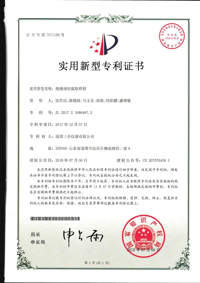 熱烈祝賀我公司產(chǎn)品“絕緣油取樣箱”發(fā)明專利獲得國家知識產(chǎn)權局授權。